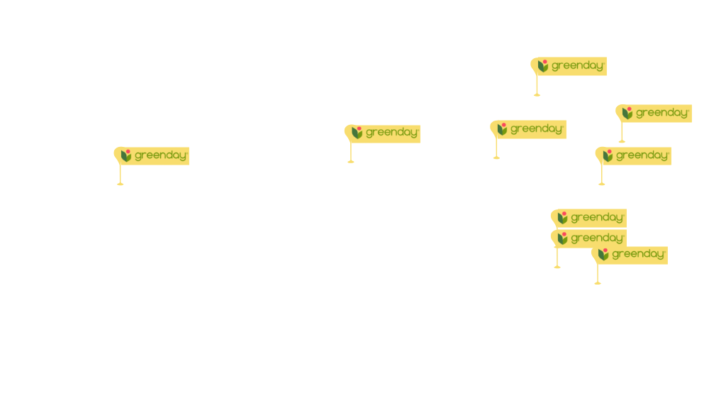 ด้วยกระบวนการผลิตที่ได้คุณภาพและรสชาติอร่อยถูกใจผู้บริโภคทั้งในและต่างประเทศของสินค้าเรา ทำให้กรีนเดย์สามารถขยายตลาดไปยังต่างประเทศได้มากกว่า 20 ประเทศทั่วโลก เราร่วมมือกับคู่ค้าต่างประเทศ เพื่อกระจายสินค้าเราให้ถูกช่องทางและตรงตามกลุ่มเป้าหมายทั้งกลุ่มคนที่รักสุขภาพ กลุ่มแม่และเด็ก และกลุ่มคนที่ชอบทานขนมขบเคี้ยวทั่วไป ผู้ที่สนใจสินค้าเราในประเทศต่างๆ สามารถดูช่องทางการขายได้ตามด้านล่างนี้ หรือผู้ที่สนใจอยากเป็นคู่ค้ากระจายสินค้าเราสามารถติดต่อเราได้โดยตรงที่ export@greenday-global.beurdev.com
