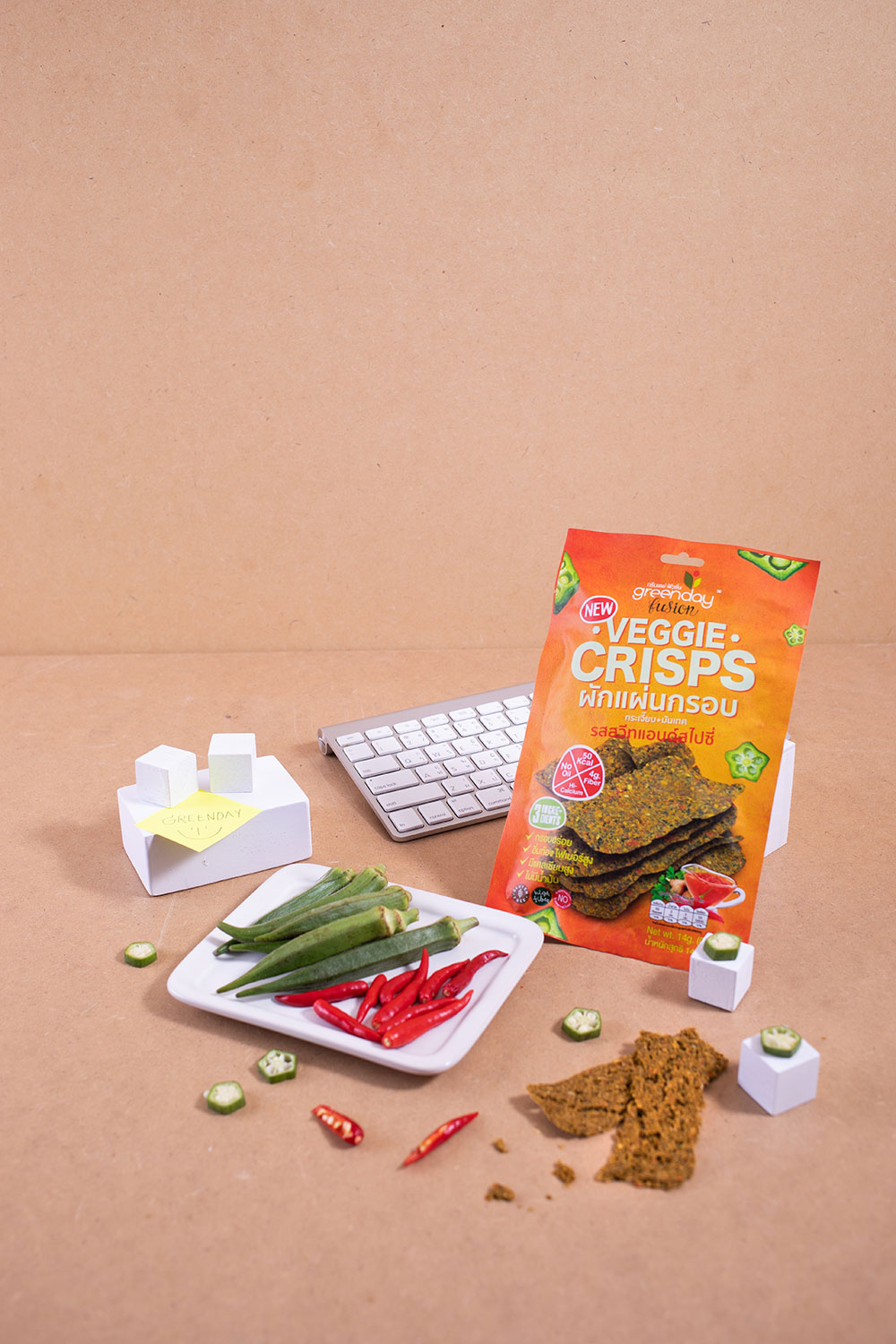 ขนมรูปแบบใหม่ ทำจากกระเจี๊ยบเขียวและมันเทศ ใส่ใจคนรักสุขภาพที่ยังเพลิดเพลินกับขนมขบเคี้ยว แต่ยังกังวลเรื่องแคลอรี่และโซเดียมของขนมทานเล่น ด้วยรสชาติที่ร้อนแรงทำให้เราเพลิดเพลินไปกับทุกชิ้นที่ได้ทาน