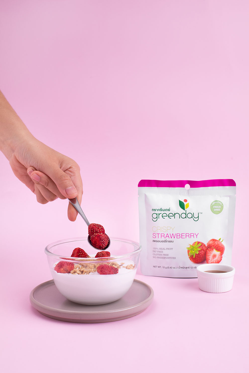สตรอเบอร์รี่กรอบ 12 กรัมอร่อยไปกับสตรอเบอร์รี่เต็มลูกในซองเล็กกะทัดรัด ทานได้ทุกโอกาส ได้รสชาติและความหวานอมเปรี้ยมจากสตรอเบอร์รี่แท้ Buy Now ส่วนประกอบสตรอเบอร์รี่ 98% น้ำตาล 2%ข้อมูลผู้แพ้อาการไม่มี