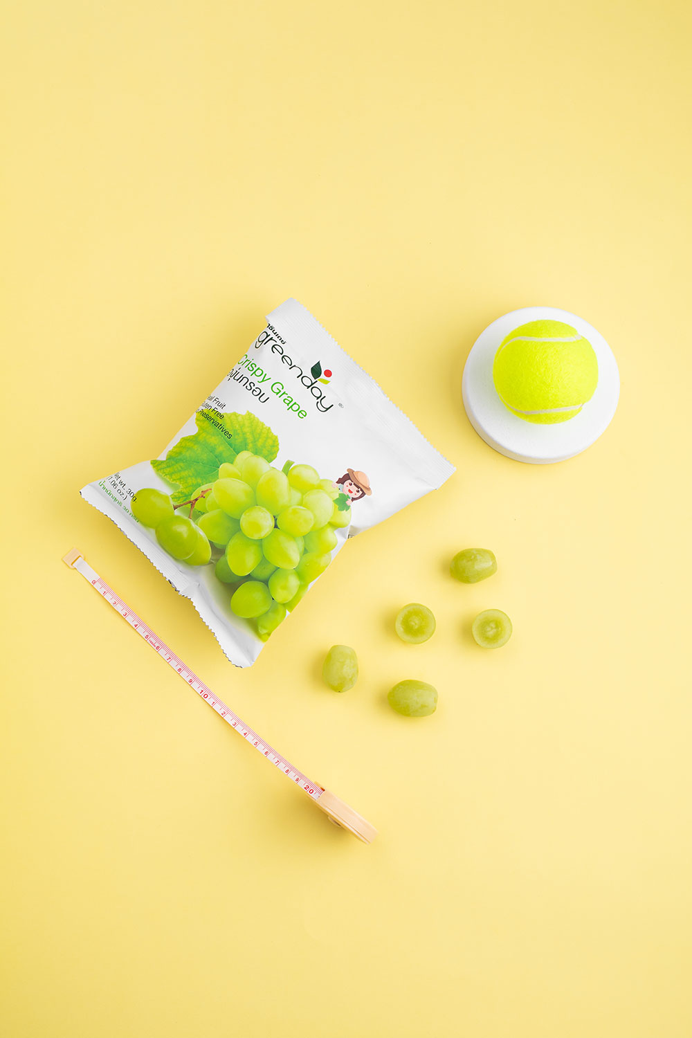 องุ่นกรอบ 18 กรัมจากองุ่นที่คัดสรรมาอย่างดี ผ่านกระบวนการที่ทันสมัย ให้คุณได้เพลิดเพลินไปกับองุ่นกรอบ ที่ให้ความรู้สึกสนุกสนานในทุกชิ้นที่ได้ลิ้มลอง Buy Now ส่วนประกอบองุ่น 100%ข้อมูลผู้แพ้อาการไม่มี
