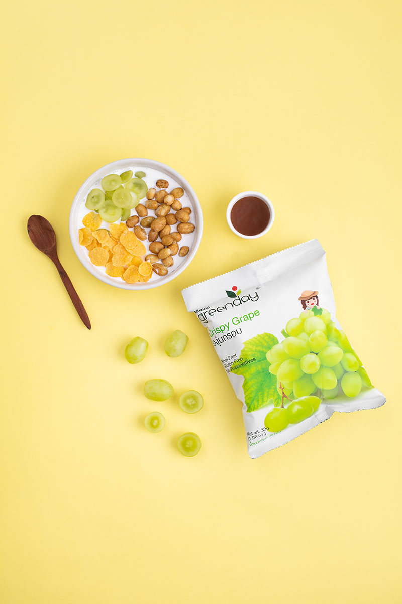 องุ่นกรอบ ถือเป็น 1 ในผลิตภัณฑ์ที่เราอยากให้คุณได้ลองกันจริงๆ ด้วยรูปลักษณ์กลมๆสีน้ำตาลที่น่าแปลกใจและความหวานกรอบอร่อยขององุ่นกรอบกรีนเดย์ จะทำให้คุณทานจนหมดถุงก่อนที่คุณจะตั้งคำถามว่านี่คือองุ่นแท้ๆหรือเปล่าแน่ ลองทานดูเลย
