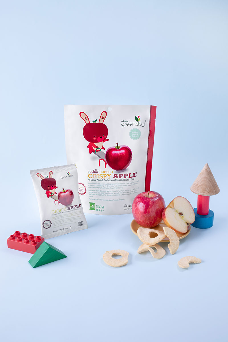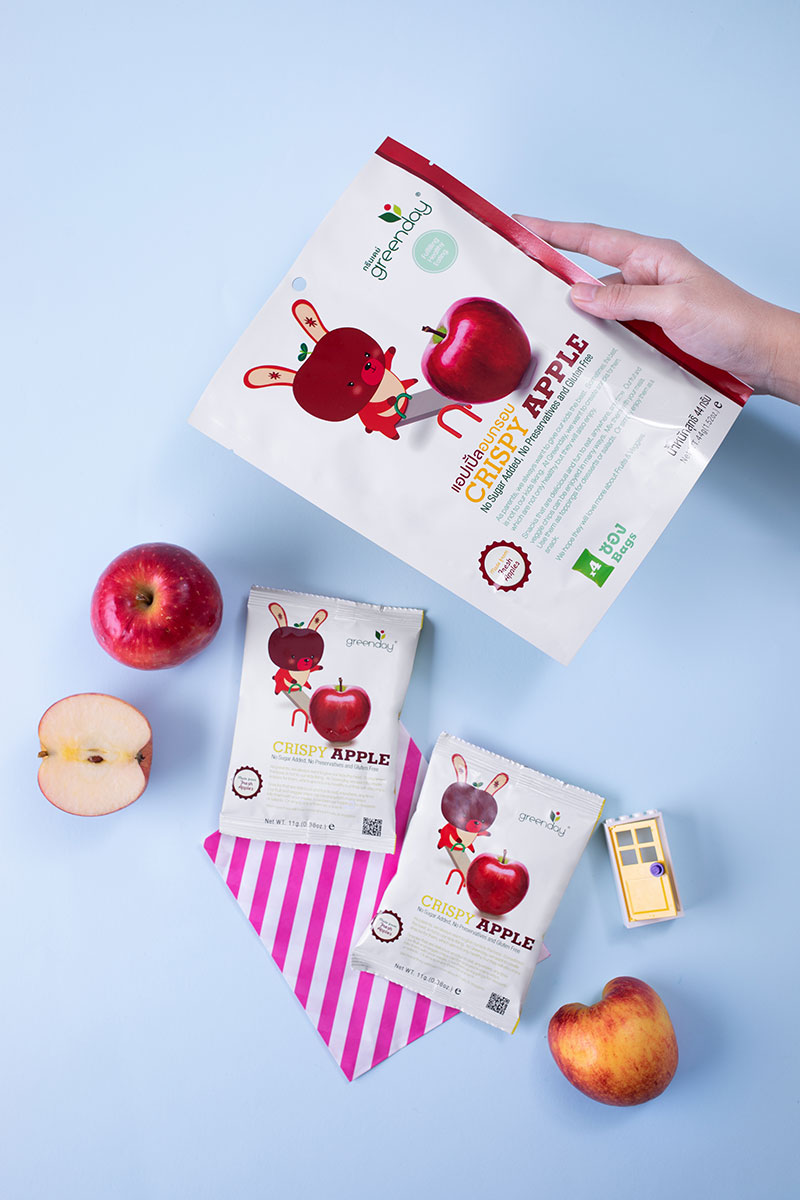 หนึ่งในผลไม้ที่น้องๆหนูๆชอบทาน คือ แอปเปิ้ล เราได้คัดสรรแอปเปิ้ลคุณภาพดีมาแปรรูปให้กรอบอร่อยทานง่าย ดึงดูดน้องๆหนูๆให้ทานผลไม้ที่เป็นโยชน์ได้ง่าย มี 4 ถุงเล็กในถุงใหญ่ แพ็กใส่กระเป๋าไปทานที่โรงเรียนได้เลย